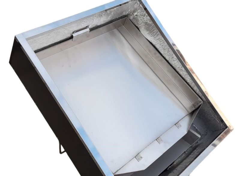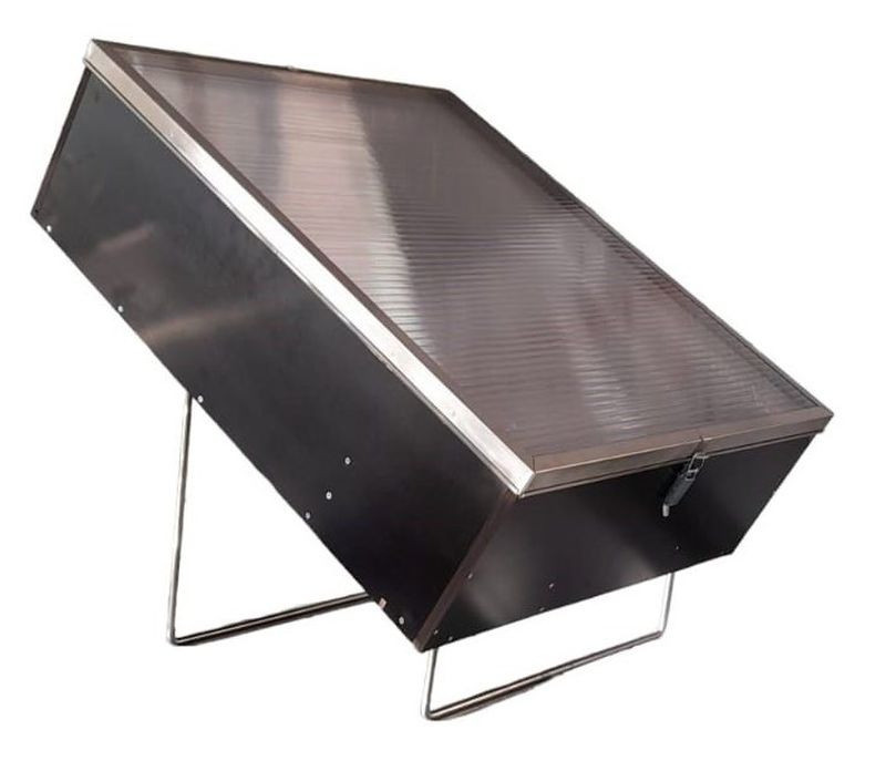 Le fondoir est réalisé en contreplaqué étanche de 12 mm d'épaisseur. Le couvercle supérieur incassable est une plaque multicouche en polycarbonate sous laquelle, en plein soleil, des températures allant jusqu'à 120 °C peuvent être atteintes. Le couvercle est solidement fixé au fondoir par des agrafes des deux côtés. Une poignée robuste est intégrée sur le côté pour faciliter le transport.