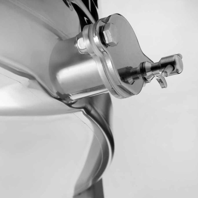 Die Honigschleuder hat einen rostfreien Quetschhahn, der am tiefst möglichen Bodenpunkt eingebaut ist, was gewährleistet, dass der gesamte Honig aus der Honigschleuder abfließen kann.
