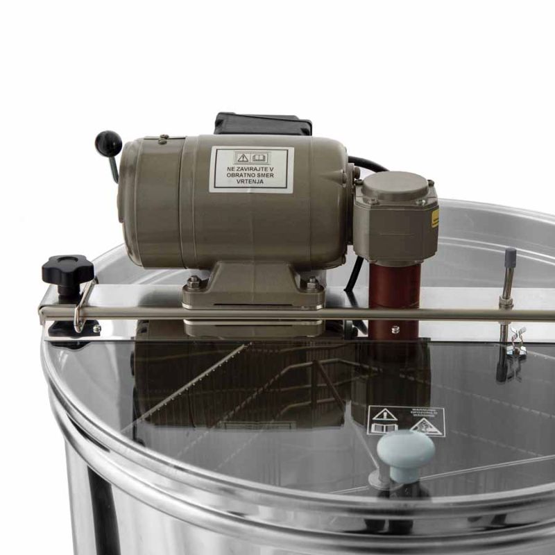 Extracteur de miel 3 cadres à entraînement moteur 110 W / 230 V avec interrupteur de sécurité intégré, qui coupe automatiquement le moteur à l'ouverture du couvercle. Une technique moderne a permis une conception innovante du fond de la cuve. Le fond de la cuve est soudé sans joint et incliné vers la sortie. Le robinet de vidange en inox est soudé au point le plus bas afin que tout le miel puisse s'écouler de l'extracteur. Le nettoyage de l'extracteur est simple. Toutes les pièces en contact avec le miel sont en matériaux agréés pour le contact alimentaire.
