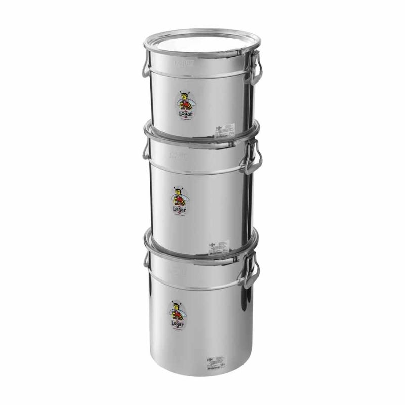 Convient pour : le stockage du miel et d'autres denrées alimentaires jusqu'à 25 kg. Dimensions intérieures : Ø 307 mm en haut, Ø 293 mm en bas ; hauteur 28 cm.