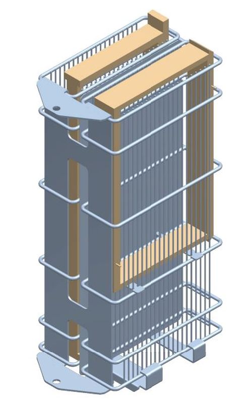 Les poches à cadres sont fabriquées à partir de montants grillagés verticaux d’une densité appropriée pour éviter d’endommager les cadres pendant l’extraction. Elles sont reliées entre elles par un mécanisme spécial. Ces poches empêchent l’accumulation de miel pendant l’extraction ; les cadres sont donc secs à la sortie de l’extracteur.